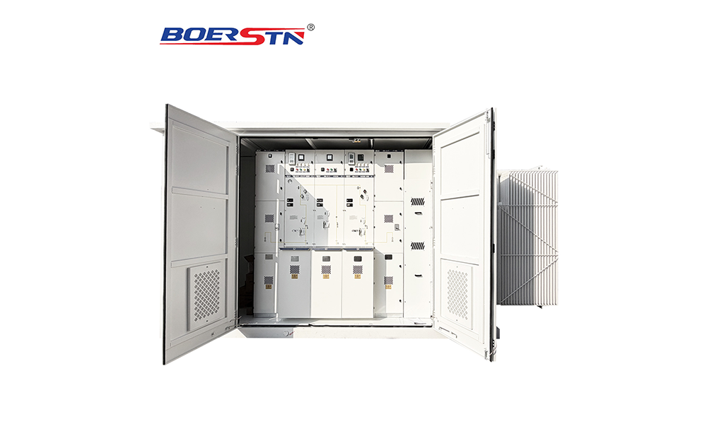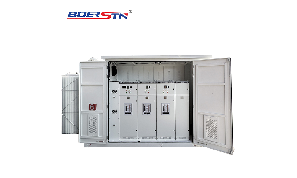 It has independent high voltage compartment, transformer compartment and low voltage compartment. The lighting of compartment can be automaticswitched on when the door opening. The high voltage compartment installed high voltage ring main unit . User can choose air or vacuum load switch and has function of “ five prevention”. When use limited current high voltage fuse, the load switch will be closing automatically if there has lack of phase working to avoid any damage .